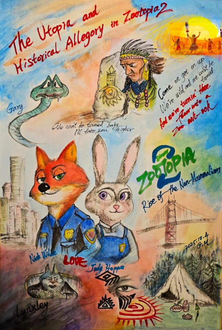 图2疯狂动物城2的乌托邦与历史隐喻纸本彩墨65cmX45cm李公明作2025年12月4日